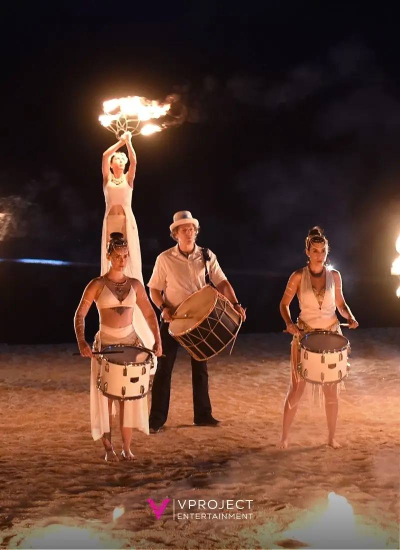 Οι κρουστοί μας απογειώνουν την εκδήλωση σας με δυναμικούς και μεταδοτικούς ρυθμούς σε κάθε σημαντική στιγμή. Από την είσοδο του ζευγαριού και την έναρξη του πάρτι μέχρι εταιρικές ανακοινώσεις και ιδιωτικούς εορτασμούς , δημιουργούν μια ατμόσφαιρα που εντυπωσιάζει και παρασύρει τους καλεσμένους.